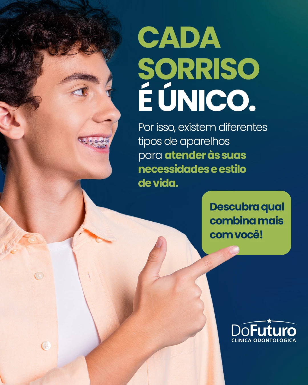 Na Clínica Do Futuro, trabalhamos com diferentes tipos de aparelhos que unem estética, conforto e eficiência. Assim, você recebe um tratamento personalizado, pensado para o seu estilo de vida, suas necessidades e o sorriso que deseja conquistar.