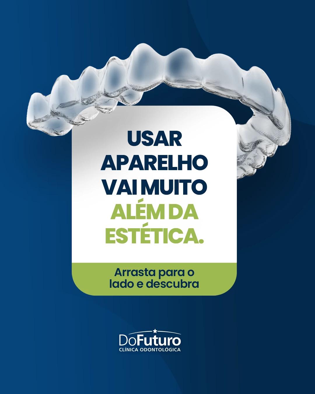 Com o tratamento inovador da Inova Alinhadores, exclusivo da Clínica Do Futuro, você conta com tecnologia avançada para alinhar os dentes de forma eficaz e confortável. O alinhador é transparente, totalmente personalizado e proporciona correção da mordida, melhora na mastigação e saúde bucal, tudo isso sem comprometer a estética durante o processo.